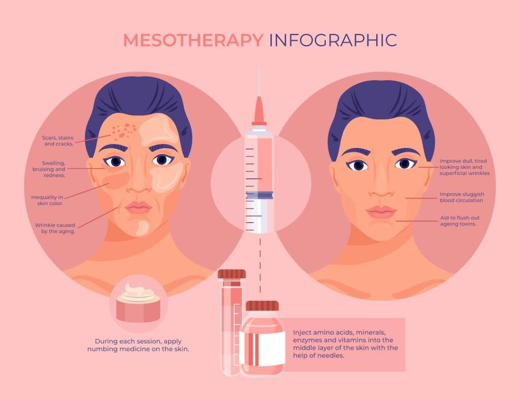 La mesoterapia è una soluzione sicura ed efficace per problemi estetici come rughe, perdita di capelli, e tonicità della pelle. Contattaci per una visita personalizzata e scopri i vantaggi di questo trattamento innovativo per il ringiovanimento di viso, corpo e capelli.